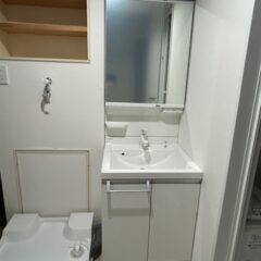- リフォーム内容:システムキッチン新調、ユニットバス新調、洗面化粧台新調、防水パン新調、トイレ新調、電気温水器新調、建具新調、全室クロス張替、フロアタイル上貼、CF貼替